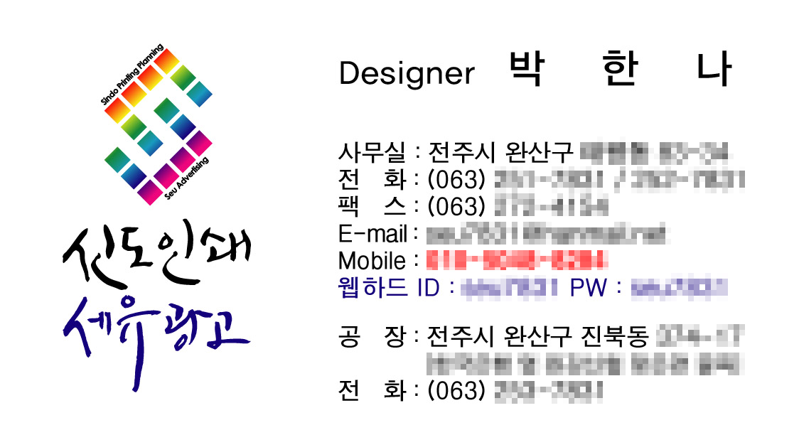 작살님께서 올려주신 캘리로 작업한.. 온새미로 일반 1 9201 2009.12.16 11:08 작살님께서 올려주신 캘리로 작업한.. 저희 명함입니다. 이사하고 일하느라 명함밖에 작업을 못해서 이제야 올려드립니다. 다른것도 만약에 작업한다면 올릴께요 감사합니다. ^^